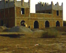 Le gros oeuvre de la maison du Jardin aux Etoiles est quasiment terminé, comme celui du château d'eau. Du point de vue des proportions, on voit que le château d'eau et sa dizaine de mètres de hauteur donnent l'impression de dépasser assez nettement la maison, qui atteint environ neuf mètres et qui se trouve être beaucoup plus large. C'est encore plus frappant lorsque le château d'eau est situé au premier plan.