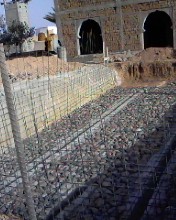 La piscine se dessine maintenant clairement dans le paysage du Jardin aux Etoiles. On voit non seulement les rainures dont je vous ai déjà parlé, mais aussi les murs de béton apparaître. Côté maison, il reste encore à construire le haut de la piscine, en forme de porte, qui comprendra les escaliers. Sur la deuxième photo, les mêmes travaux, vus en sens inverse, côté Atlas.