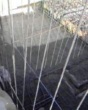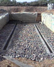 On distingue le sol du local technique et de celui, adjacent, de la bâche, destiné à réguler le flux de l'eau.