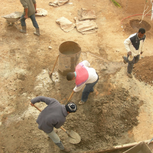 Riad en construction : les Marocains sont réputés être bons ouvriers. Les Suisses bons arracheurs de dent... Moment de dérision à Taroudant...